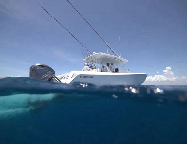 • Powered by multiple outboard engines, the 44FA delivers exceptional speed and stability, even in the roughest seas. Its advanced hull design ensures a smooth ride, making long offshore trips more comfortable and enjoyable.