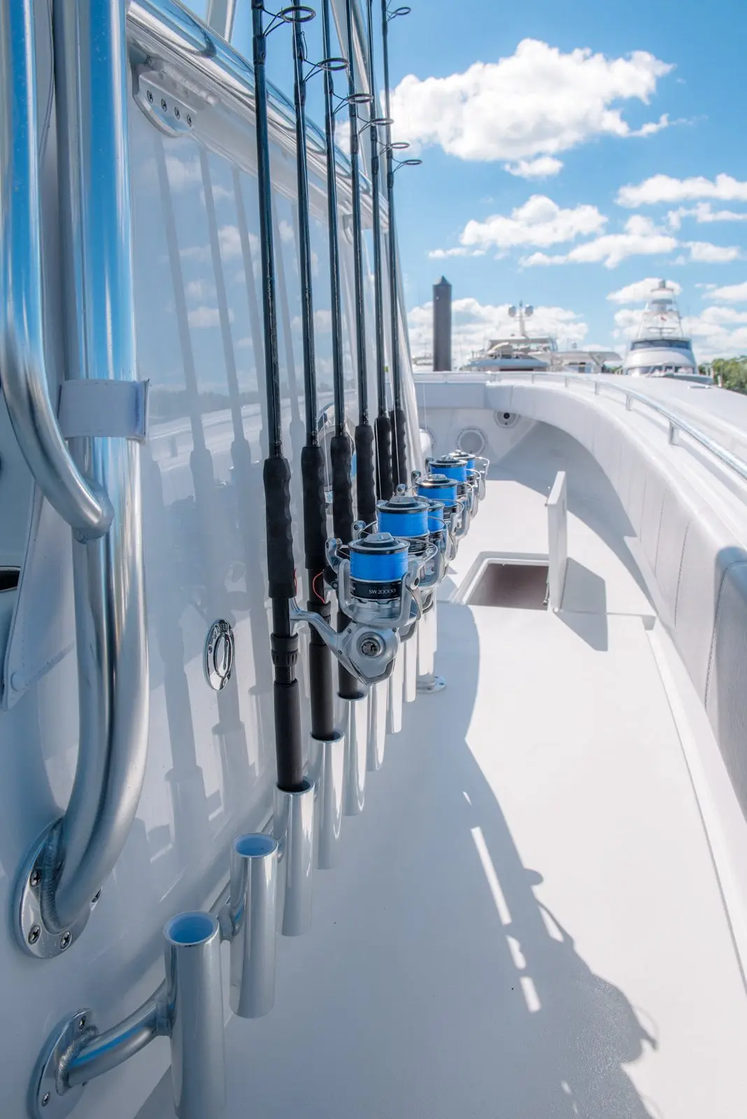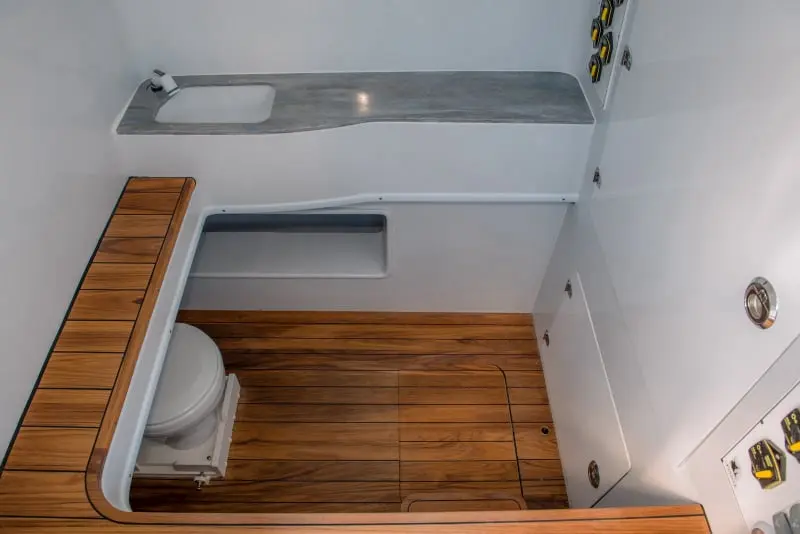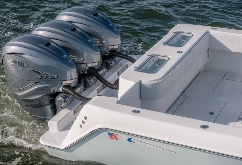 • With the ability to equip up to four outboard engines, the 44ST delivers unparalleled speed and agility, ensuring you reach the fishing grounds faster than ever before. Its advanced deep-V hull design offers superior stability and a smooth ride, even in the roughest seas.